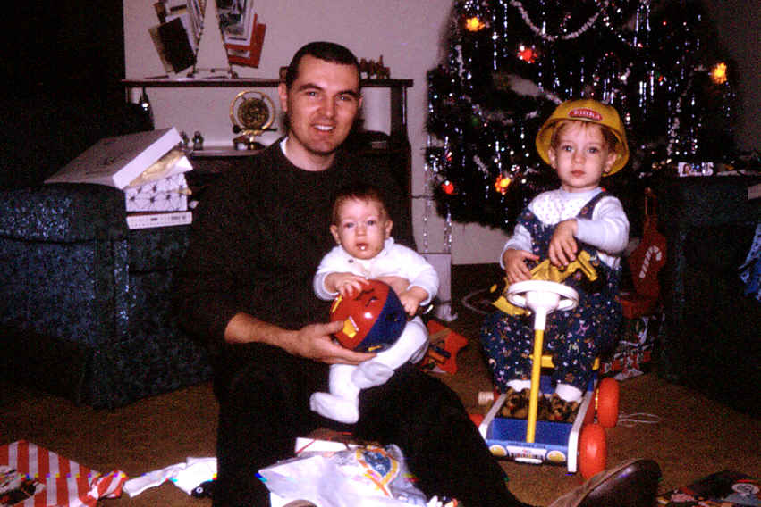 In contrast my father was of a decidedly different generation with a decidedly different set of expectations, which may be one of the reasons that his memories, by and large, weren’t as crystalline as those of his father. He was one of the baby boomers around whom the whole world seemed to prostrate itself. He married my mother, Judie, and they bought a house. He became a draftsman, which is a job no one has any more, but it allowed him to be photographed in the 60s wearing a ribbon tie leaning over a drafting table looking like a cross between a Watergate thug and a member of the Apollo mission control. It was a time of promise, in so many ways. In June of 1969 he paced the halls of a hospital corridor waiting to be told  that it’s a boy. Then he handed out cigars (which I suppose goes to show that it’s not a behaviour confined to New Yorker cartoons).  A month later he photographed the TV when Neal Armstrong stepped foot on the moon.
