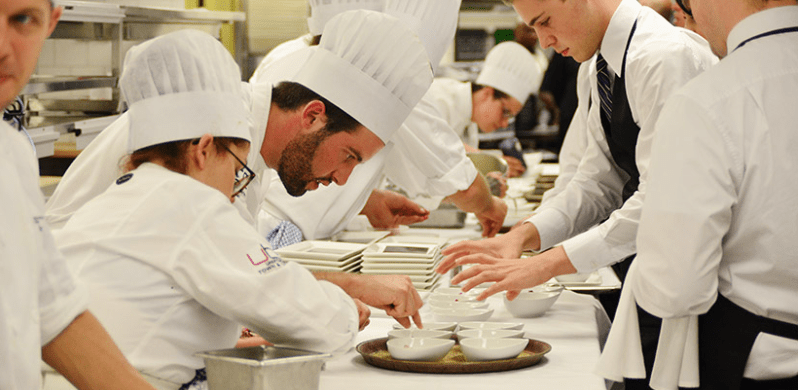 It’s a unique environment, and one that Gabby is quickly integrating into. Though she’s only been in the program for a few weeks, when she walks me through the kitchens she interacts amiably with students and teachers, all wearing chefs hats and crisp white jackets. There’s a lovely collegiality, to be sure, but the program is all business. Gabby shows me her marks so far, all of which are delivered to her via an app on her phone. She’s been marked on everything from food prep, to making a hollandaise sauce, to knife skills. “I don’t like that one,” she says skipping past a mark for a pop quiz. The rest, though, are all As.