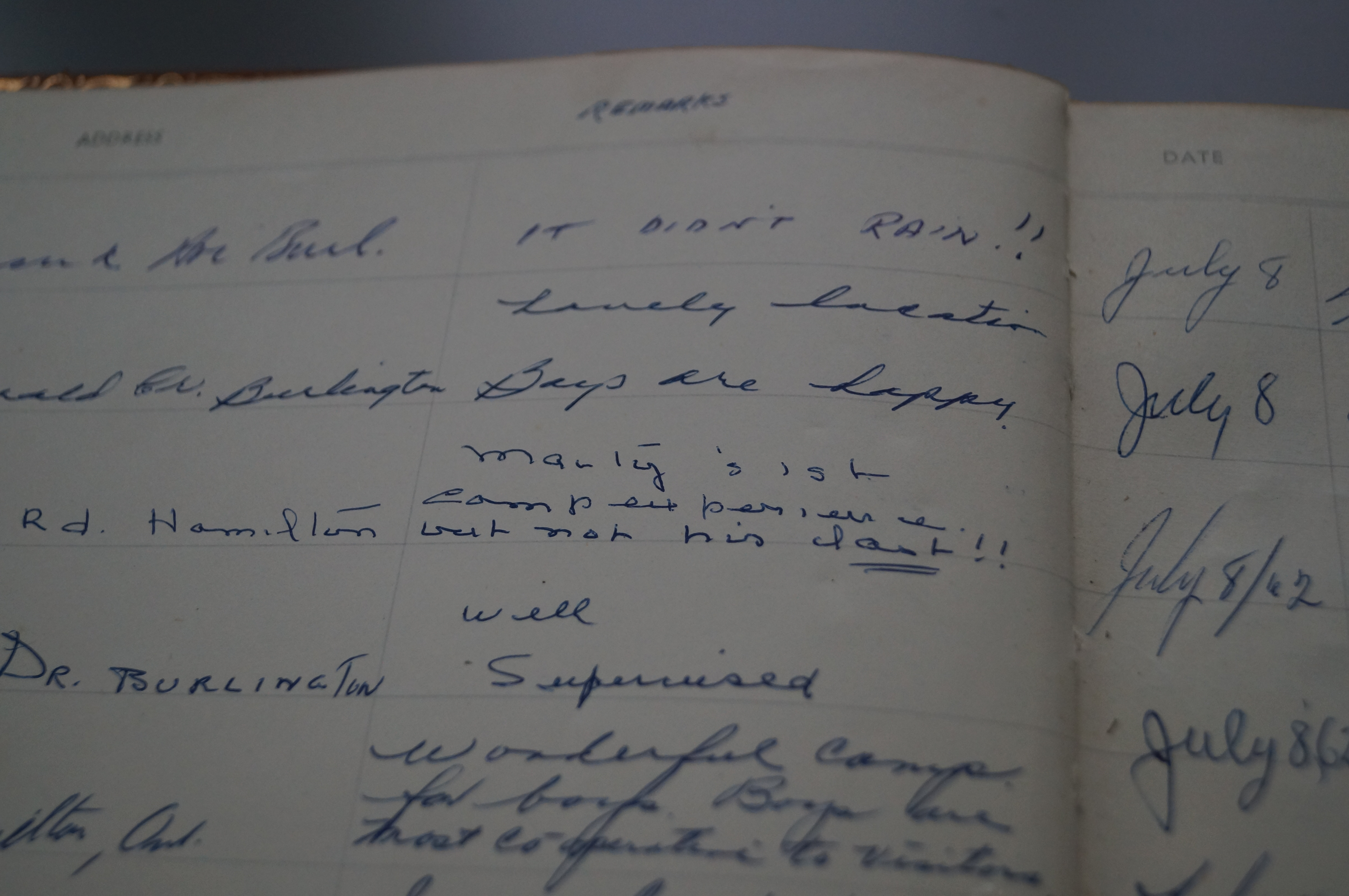 The Kayes set aside a section of the camp with a couple of cabins that parents could rent by the day or week. These cabins, which were equipped for two people, rented for $1.50 per day or $8.00 per week. (The Old Director’s Cabin near the government docks is one of those early cottages.)