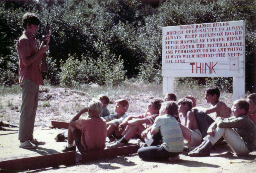 “I remember we had a trick for lighting fires,” says Gary Furness. “We had some guy sit up in a nearby tree and he would have a toilet paper roll that had been soaked in kerosene. Charlie Hogg would get the campers going and they’d be yelling to the fire gods to light the fire. It would be pitch black and nobody could see anything. Suddenly, up in the tree the guy would light the toilet paper. Then he’d let the thing slide down this wire. Of course it hits a pile of wood that also been soaked in kerosene and poof, instant fire. The kids would go ballistic. They’d all be going ‘Wow!’ Of course, the guy up in the tree had to sit there all through the campfire so nobody would see him hoping he didn’t light himself or the tree on fire. Those are some of the neat things we did. We used to try to impress the kids with all kinds of stuff.”